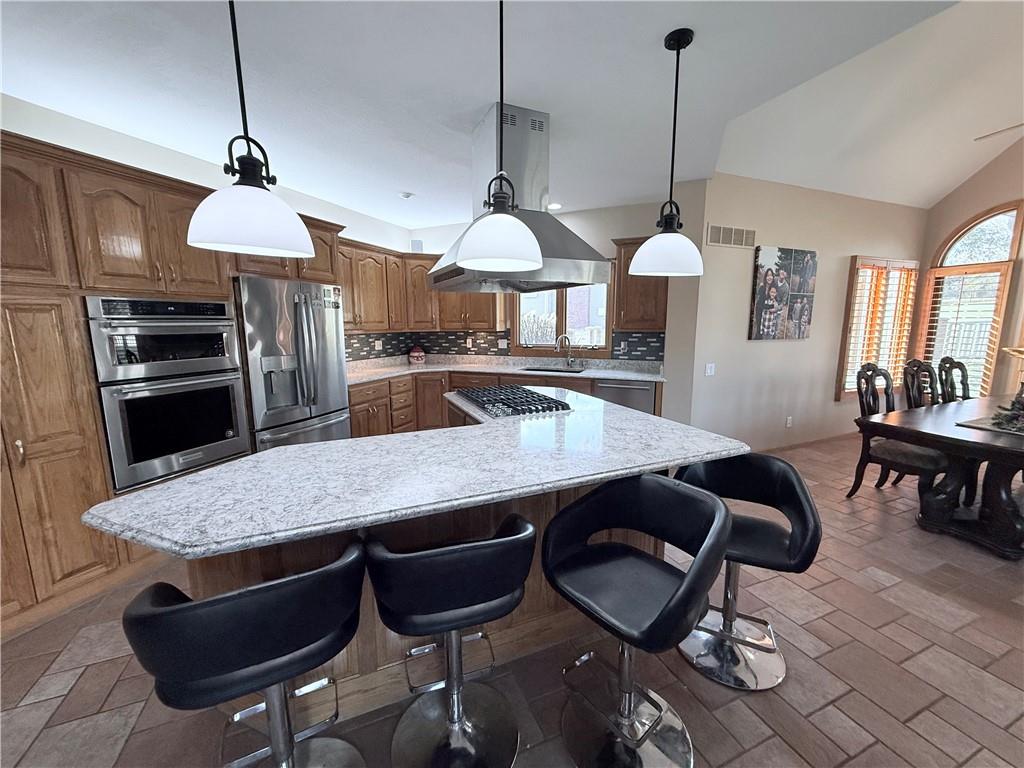 STUNNING APPROXIMATELY 5500 SQ FT TWO-STORY BRICK AND STUCCO HOME WITH A FULLY FINISHED BASEMENT, OFFERING 5 SPACIOUS BEDROOMS AND 4.5 BATHS, SITUATED ON A BEAUTIFULLY LANDSCAPED 1.15-ACRE LOT. ELEGANT SANTOS MAHOGANY FLOORS HIGHLIGHT THE FORMAL DINING ROOM, LIVING ROOM AND WELCOMING ENTRY. ALSO FEATURING SOARING CEILINGS AND A DRAMATIC UPPER-LEVEL OVERLOOK, THIS HOME IS FILLED WITH NATURAL LIGHT AND AN OPEN, AIRY FEEL THAT ENHANCES BOTH SPACE AND FLOW, THE FULLY REMODELED KITCHEN IS A TRUE CENTERPIECE FOR ENTERTAINMENT, FEATURING QUARTZ COUNTERTOPS, A LARGE CENTER ISLAND WITH SEATING, GAS STOVE WITH EXTERIOR-VENTED HOOD AND AN ADDITIONAL EXPANSIVE DINING AREA ARE PERFECT FOR GATHERINGS. ZONED HEATING AND COOLING PROVIDE YEAR-ROUND COMFORT THROUGHOUT THE HOME. THE FINISHED LOWER LEVEL INCLUDES AN OVERSIZED THEATER ROOM AND A RELAXING SAUNA, ADDING A SPA-LIKE RETREAT. OUTDOORS, ENJOY A HUGE FENCED BACKYARD IDEAL FOR ENTERTAINING, PLAY OR PETS, WHILE THE FRONT OF THE HOME OFFERS SERENE VIEWS OVERLOOKING A NEIGHBORING POND. THIS EXCEPTIONAL PROPERTY COMBINES LUXURY SPACE, AND TRANQUILITY IN AN IDEAL SETTING CONVENIENTLY LOCATED TO INTERSTATE AND AMENITIES.