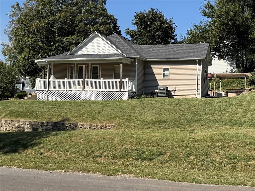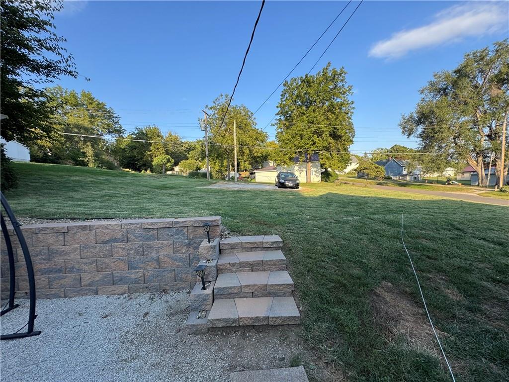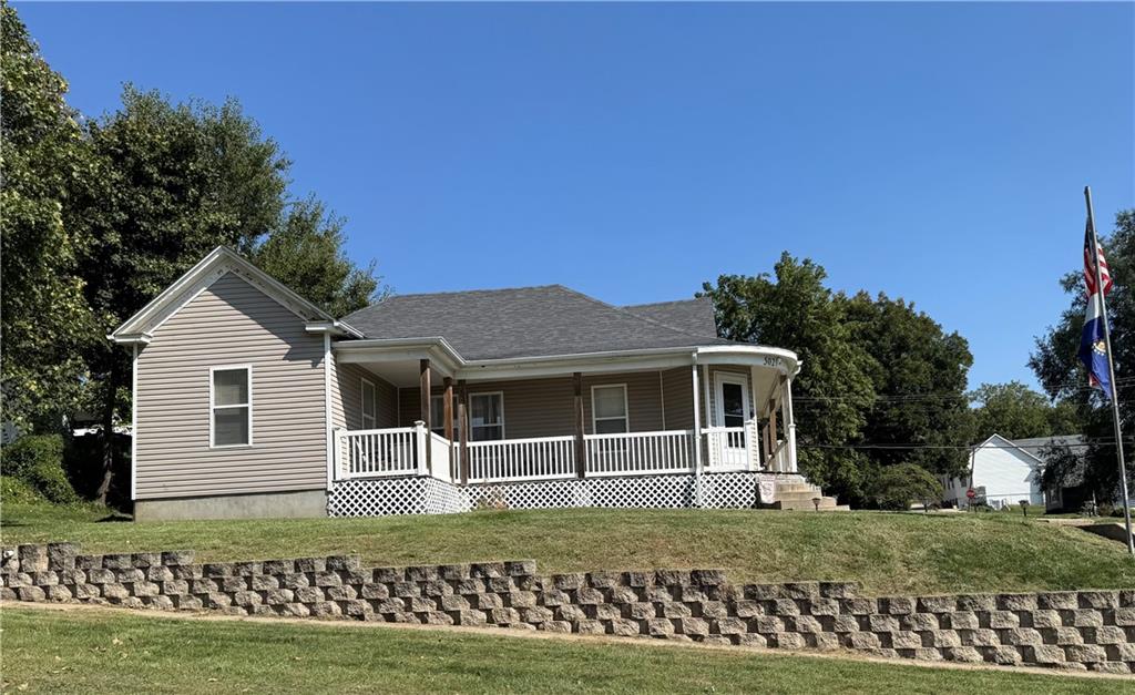 One-Level Living with Wraparound Porch Charm — Priced to Sell at $159,000! This 3-bed, 2-bath bungalow sits on a corner lot and blends character with thoughtful updates. Everyday entry is a breeze — the back door opens directly into a handy mudroom/laundry with a full bath, offering easy access without climbing a bunch of stairs. From there, step into the spacious country kitchen with abundant cabinetry, stainless appliances, and an adjoining dining area perfect for gatherings. The bright living room features a cozy fireplace accent wall. The large primary suite boasts a full bath with tub/shower combo, double vanity, and an additional makeup vanity. Two more comfortable bedrooms complete the main level. Outside, enjoy the gravel patio with pergola, a retaining wall with steps, and a generous yard. Unfinished basement offers utility access with a newer water heater. Conveniently located near schools, parks, and downtown Mound City with quick access to I-29.