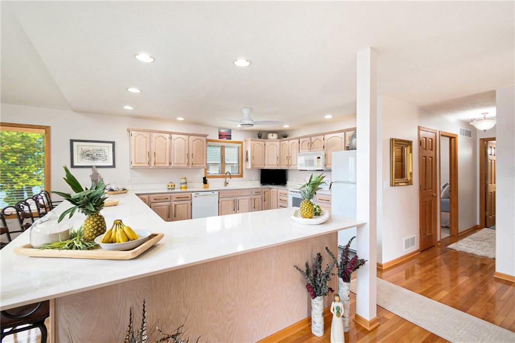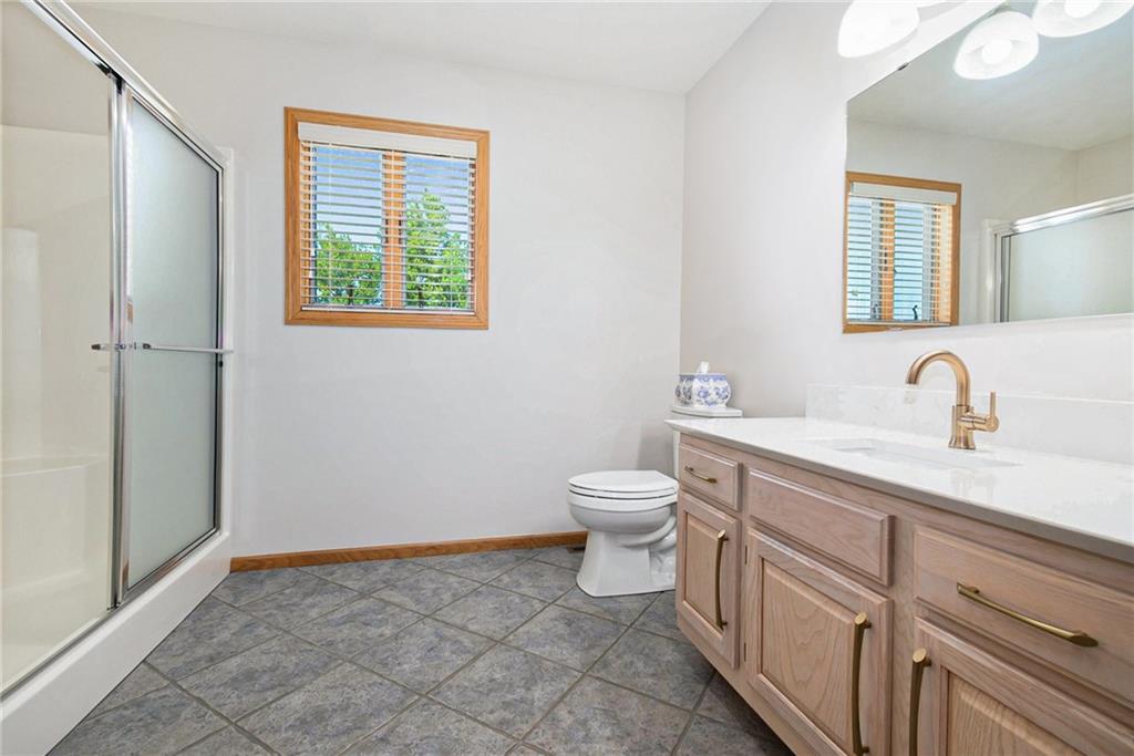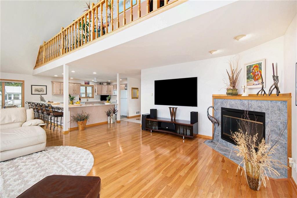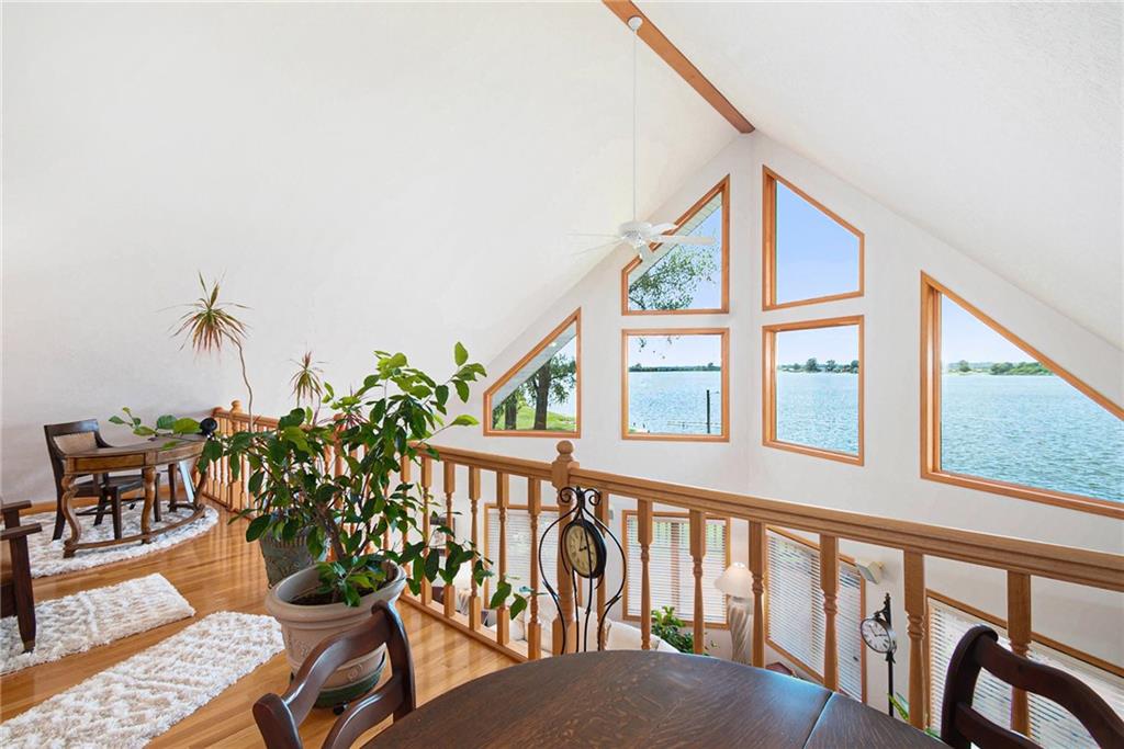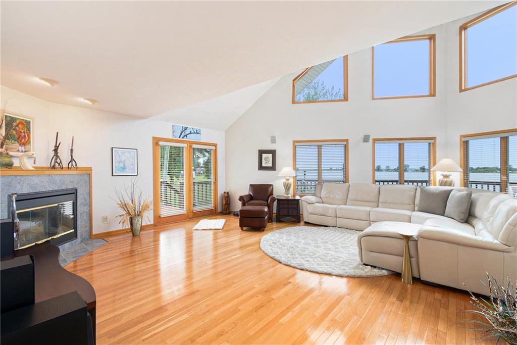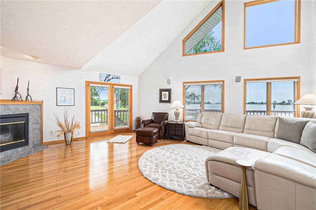 Experience lake-side living at its best — evenings on the lakeside deck, sunsets over the water, and a turnkey home ready for your family’s next chapter.This lakefront home offers 3 generous bedrooms and 3 full baths — updated with new toilets, plumbing fixtures, and luxurious quartz countertops in 2023. Inside, you’ll find meticulously maintained white-oak flooring, ceramic tile in kitchen and baths, and cozy carpet in the bedrooms. The open main-floor layout flows from the oversized kitchen (complete with peninsula seating) through dining into a living area with panoramic lake views. A spacious 750 sq ft deck off the main living level and a 180-sq ft dual-stair walkway invite outdoor enjoyment, while a 544-sq ft enclosed basement porch showcases two-story lake and sunset views. Major systems — HVAC, humidifier, water filtration & softener — were replaced in 2021; the roof and siding (impact-resistant roof, 2022 diamond-kote siding) ensure durable, low-maintenance exterior. The property includes two new boat docks (2023), a lift motor replaced 2024, and even a full bathroom-connected, 1,400-sf built-in garage with MyQ garage door opener + screened porch — perfect for boat, trailer, mower, and storage.