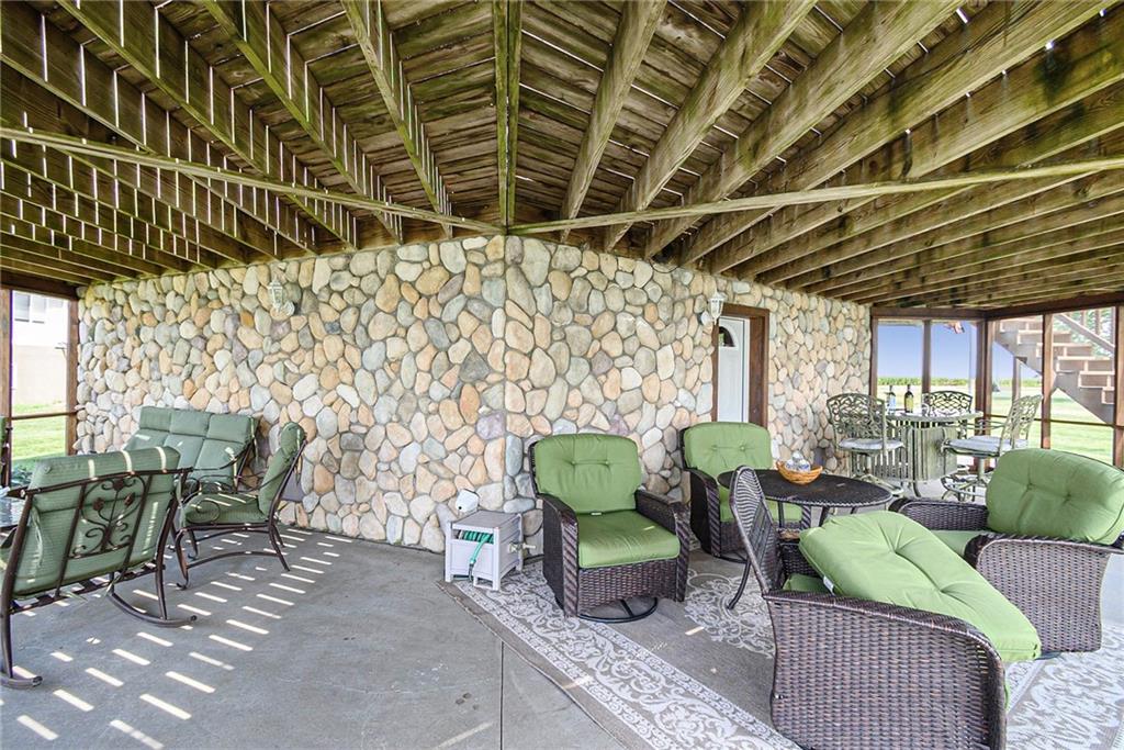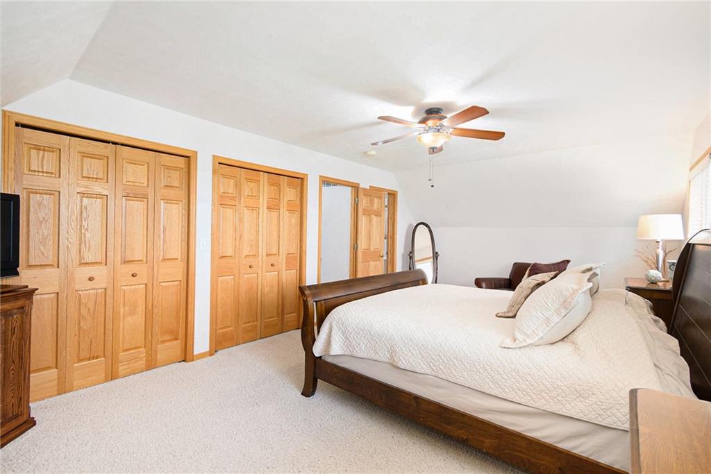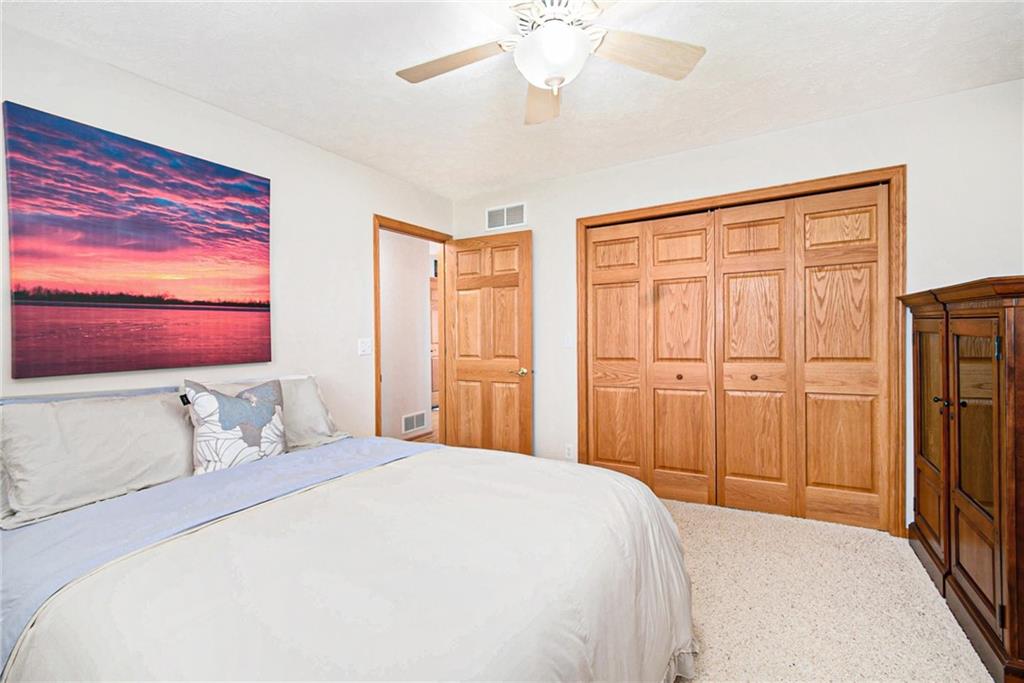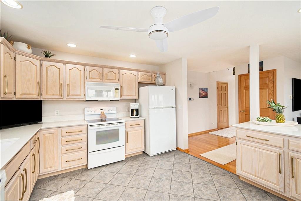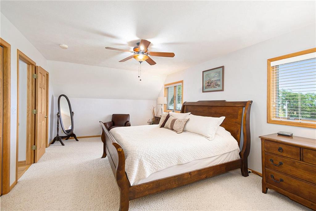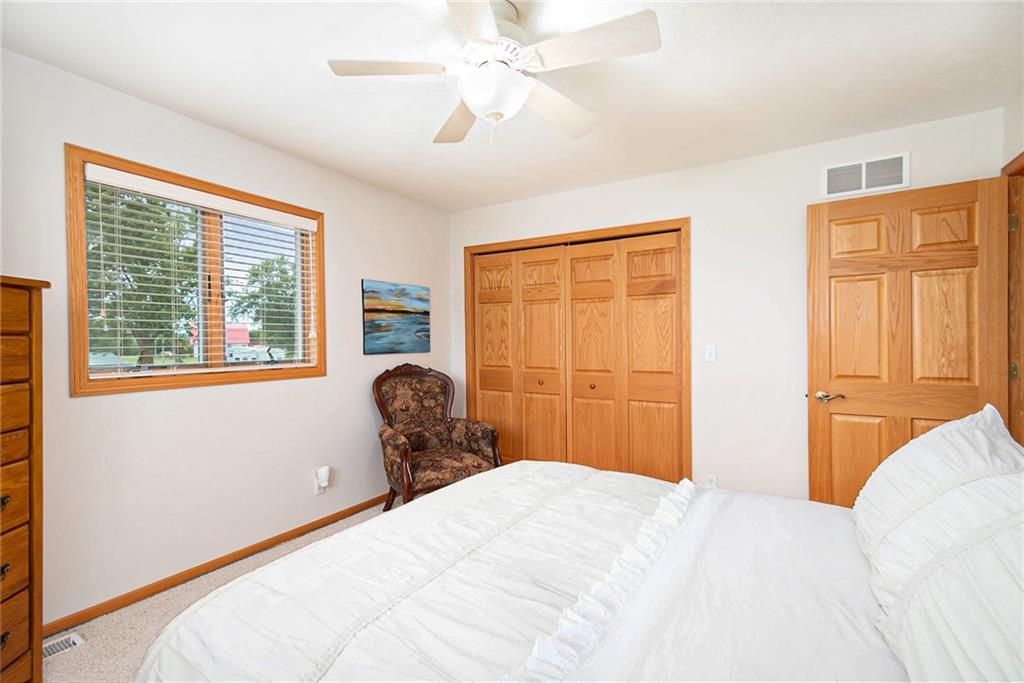 Experience lake-side living at its best — evenings on the lakeside deck, sunsets over the water, and a turnkey home ready for your family’s next chapter.This lakefront home offers 3 generous bedrooms and 3 full baths — updated with new toilets, plumbing fixtures, and luxurious quartz countertops in 2023. Inside, you’ll find meticulously maintained white-oak flooring, ceramic tile in kitchen and baths, and cozy carpet in the bedrooms. The open main-floor layout flows from the oversized kitchen (complete with peninsula seating) through dining into a living area with panoramic lake views. A spacious 750 sq ft deck off the main living level and a 180-sq ft dual-stair walkway invite outdoor enjoyment, while a 544-sq ft enclosed basement porch showcases two-story lake and sunset views. Major systems — HVAC, humidifier, water filtration & softener — were replaced in 2021; the roof and siding (impact-resistant roof, 2022 diamond-kote siding) ensure durable, low-maintenance exterior. The property includes two new boat docks (2023), a lift motor replaced 2024, and even a full bathroom-connected, 1,400-sf built-in garage with MyQ garage door opener + screened porch — perfect for boat, trailer, mower, and storage.