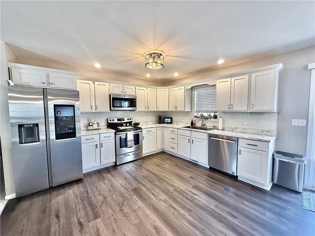 Immaculate inside and out, this stunning four-bedroom, three full bath home truly has it all. Thoughtfully updated over the past few years, it features new flooring, new deck, a beautifully remodeled kitchen with updated countertops, backsplash, and cabinetry, plus modern light fixtures and renovated bathrooms. The spacious open floor plan is perfect for both everyday living and entertaining, highlighted by a custom-built fireplace that anchors the inviting family room. The primary suite offers a generous layout with a large en suite bath for your comfort. Convenience meets functionality with main-floor laundry, while the finished basement provides even more living space, including an additional family room and a fourth bedroom—ideal for guests or a home office. Move-in ready and meticulously maintained, this dream home lets you settle in without lifting a finger. Complete with a two-car garage and packed with upgrades and amenities, it’s an opportunity you don’t want to miss.