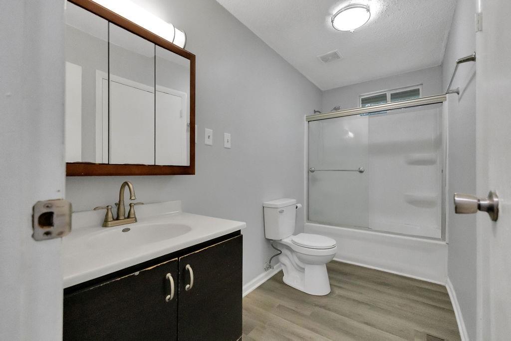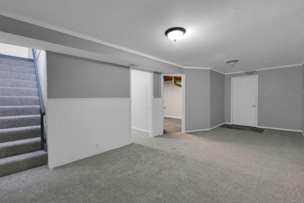 Fantastic location! This home features fresh interior paint, new plank flooring, and carpet throughout. The bright, open living room flows into the dining area and kitchen, creating a welcoming space for everyday living. The main floor offers 3 bedrooms and a bath with access from both the master bedroom and hallway. The finished lower level includes a spacious rec room and a non-conforming 4th room with closet—ideal for an office, guest room, or hobby space—plus an enclosed laundry/furnace room and a garage with new garage door and opener. Outdoor highlights include a front deck, fenced backyard, and concrete patio perfect for entertaining.