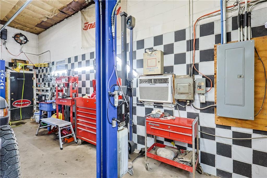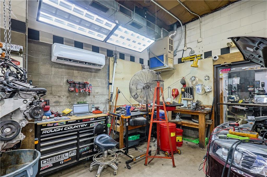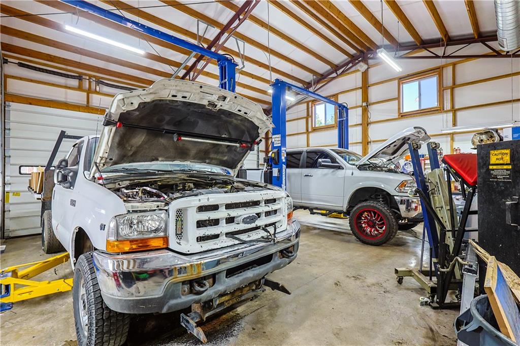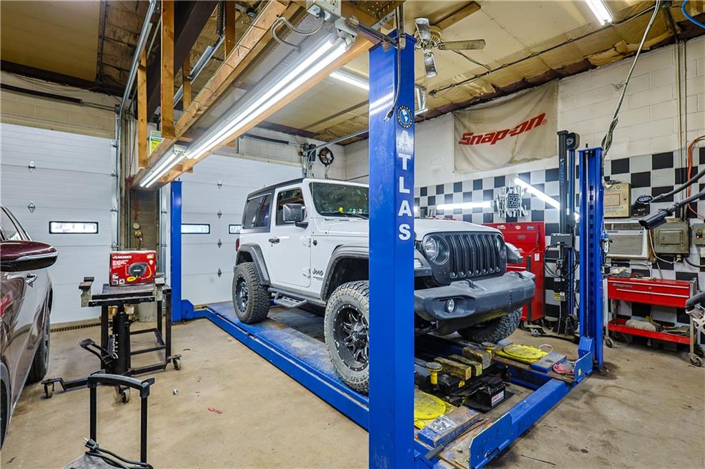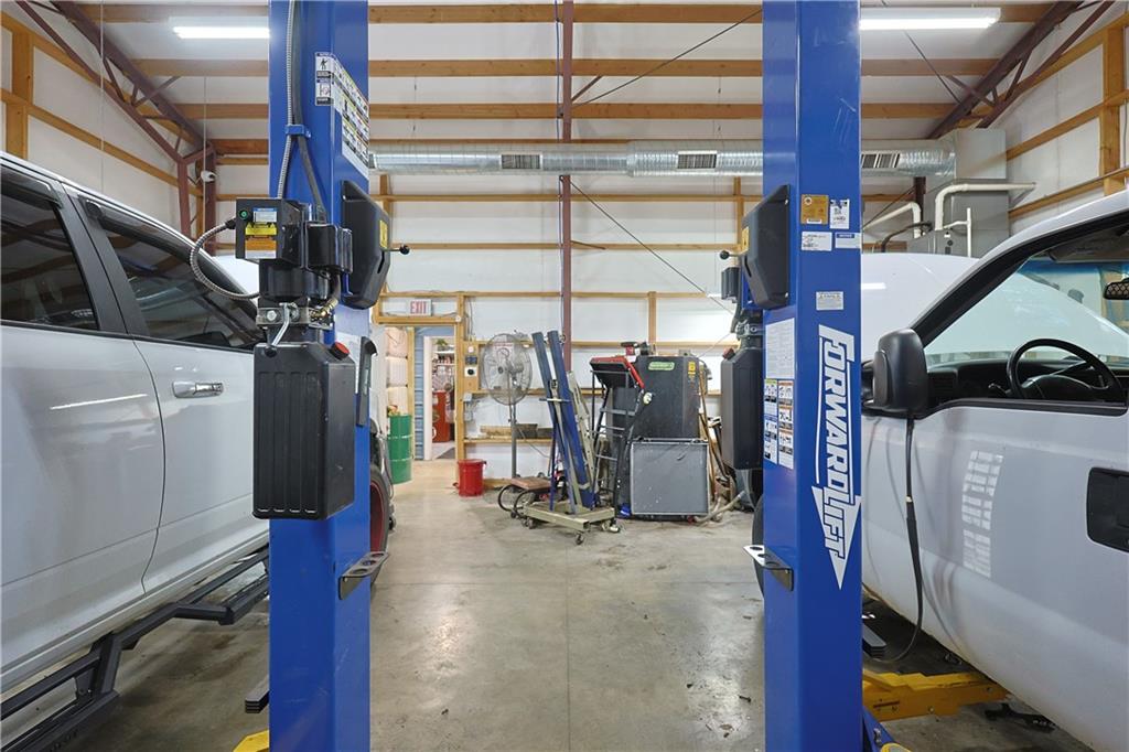 Fully Operational Automotive Repair Shop – A Turnkey Opportunity for Aspiring Business Owners. This well-equipped and fully functioning automotive repair shop offers the perfect setup for anyone looking to step into ownership with ease. Key features include: Two separate work areas with - New 10,000 lb lifts, 10 ft garage doors on both north and south sides, 14 ft peak ceiling height in the main garage area, Loft area with A/C - great for office or storage, Climate control throughout with central A/C and a gas furnace, plus a new mini-split system (installed 2024) on the south side. North side updates include a metal roof (2017) over the north bay and loft area, 60-gallon compressor services the north side and 80-gallon compressor services the south, In-ground lift on the south side. Metal siding for durability. Property includes 1 bathroom. Shed included. Utilities average $300/month. Security system installed; monitoring is $40/month. Note: The alignment machine and rack on the south side, as well as the tire machine and oil, are not included and will go with the seller. This is a rare opportunity to step into an established, ready-to-go shop with valuable infrastructure already in place. Don’t miss it!