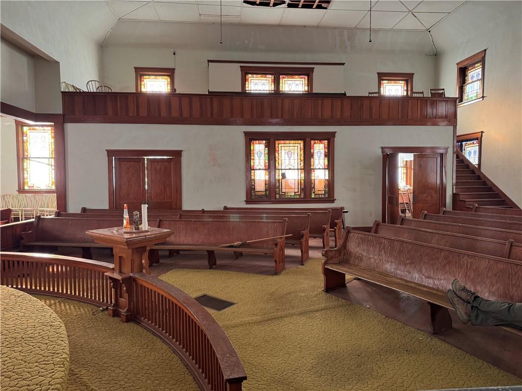 Calling all visionaries! This former church offers a spacious layout ideal for a fun and rewarding rehab project. With ample square footage, it could be reimagined as a hunting lodge, residence, community gathering space, or another unique concept. A kitchen area is already plumbed downstairs, adding to the property’s potential. If you’re ready to get creative, this property offers endless possibilities for transformation, sold as is.
