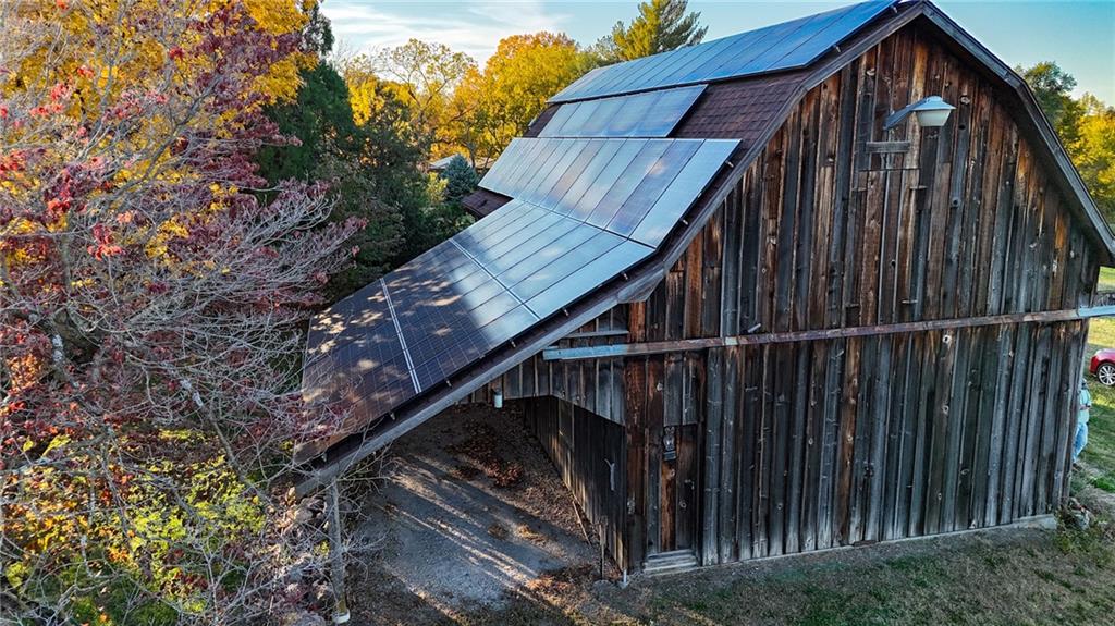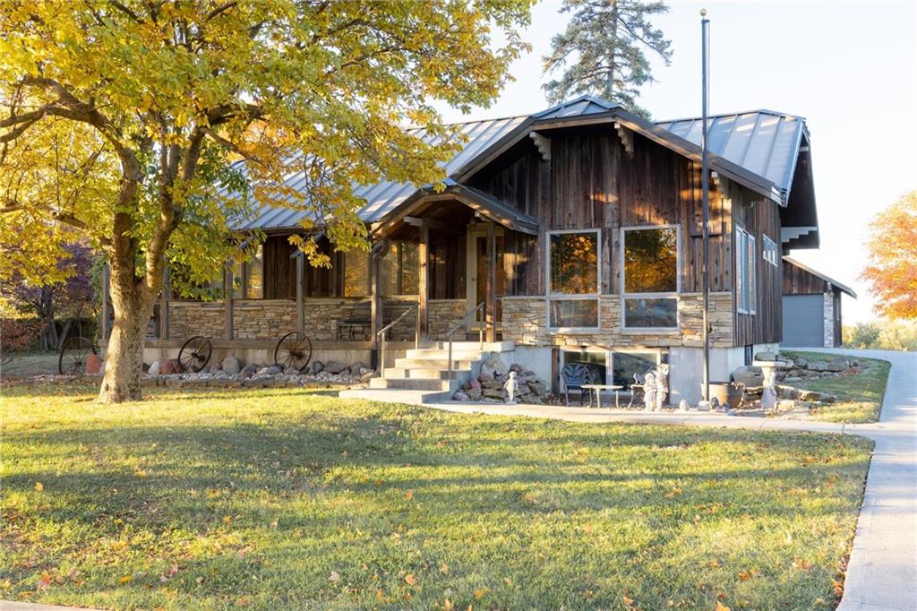 Step into classic western charm with this beautifully crafted home, perfectly set on a spacious lot surrounded by mature trees. Featuring timeless rustic design, this home offers the ideal blend of comfort, character, and convenience. The house features 3 bedrooms, 3.5 bathrooms & formal dining. A sun room can be found off the master suite, offering the perfect place to begin and end your day. An unfinished attic offers room for more finished square footage if desired. There is a concrete driveway that leads to a two car garage on the north side of the house, where one can enter the house without the use of steps. An attached garage can be found in the basement. A standout feature is the matching barn- perfect for hobbies, storage, or transforming into your own space. Paid for solar panels are installed on the barn that greatly reduce the property’s electric bill. In addition, the property features a ground source heat pump with wells as a top shelf mechanical bonus. Nestled in a great small-town location, this property provides the rare opportunity to enjoy tranquility while staying connected to the charm and convenience of a close-knit community. There is an option to purchase adjoining acreage to this property, inquire for details. Schedule your tour today!