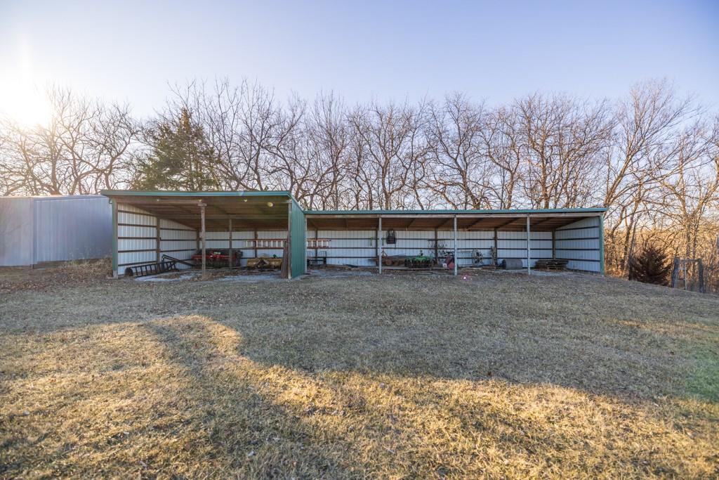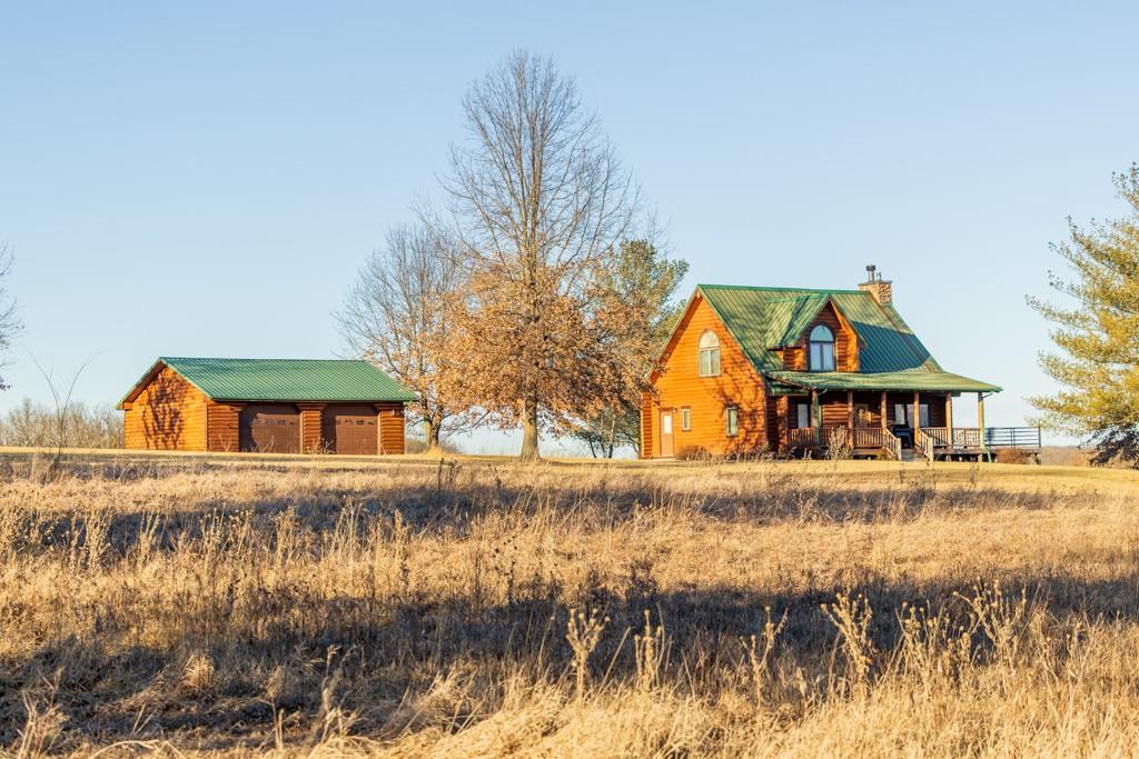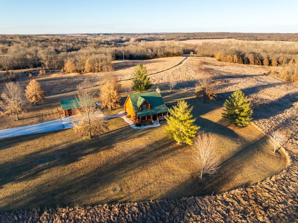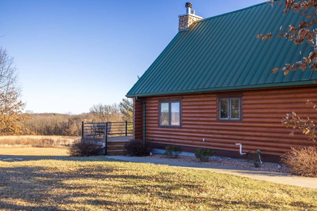 Beautiful secluded country setting with gorgeous views. This 17+/- acre property sits just into Gentry County with paved road frontage. Just minutes from Interstate 35, as you pull in you will already feel how secluded this property is as you drive across the pond dam along the treed driveway. Tucked over 400 yards off the road you will find a beautiful log home that has that feeling you are in the mountains on vacation. Custom stone fireplace, antler chandelier, log railings, hardwood floors, and open vaulted ceilings with large loft. The master is on the main level with a full bath and open kitchen. Outside you will find a covered front porch leading to a wrap around deck with new metal railing and low maintenance metal roof. The walk-out basement gives you even more room for friends and family with additional bathroom, laundry hookups, and wood burning stove. The large 2 car garage matches the log home and is fully insulated with mini-split HVAC. There is also a small shop and large lean-to for your equipment storage. Very well kept, this property also has potential as a rental for additional income if you are not considering it as your primary residence. There is a new Marathon water heater and the HVAC system has all been replaced within the last couple of years. Attention to detail and that mountain feeling is what you will find on this one-of-a-kind acreage. Also listed as an entire 97 acre parcel, MLS 2597894.
