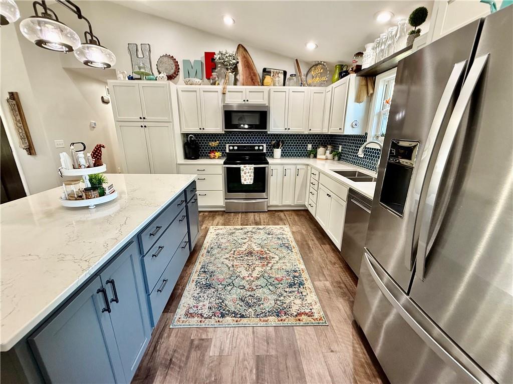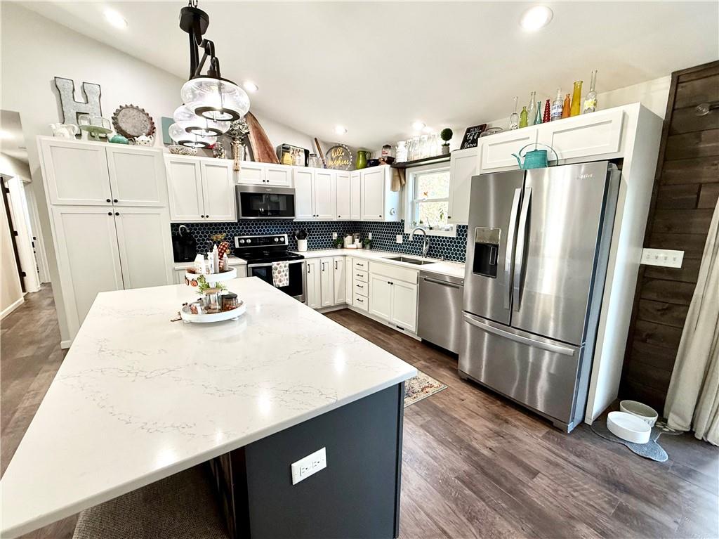 Don't miss this exceptional home just minutes from NWMSU campus! This true ranch offers the perfect blend of comfort, style, and functionality. With 4 spacious bedrooms, 3 full bathrooms, and a 2-car attached garage, this home is designed for modern living and everyday convenience. Boasting ALL NEW major systems, fixtures, and finishes in 2020, this property is truly move-in ready! The stunning kitchen is a standout, showcasing stainless steel appliances, solid surface countertops, and a seamless flow into the main living and dining areas—ideal for everyday living and entertaining. Downstairs, the finished walk-out basement is an entertainer’s dream, complete with a custom wet bar overlooking the cozy seating area around the wood-burning fireplace. The adjacent media room is ready for viewing the big game or movie night. Step out onto the custom stamped concrete patio to your own backyard oasis. Enjoy the privacy of the covered patio, or toast s'mores around the built-in fire pit. The fenced back yard is ready for pets or play - and the storage shed stays! Don't miss your chance to call this exceptional property home—schedule your private showing today!