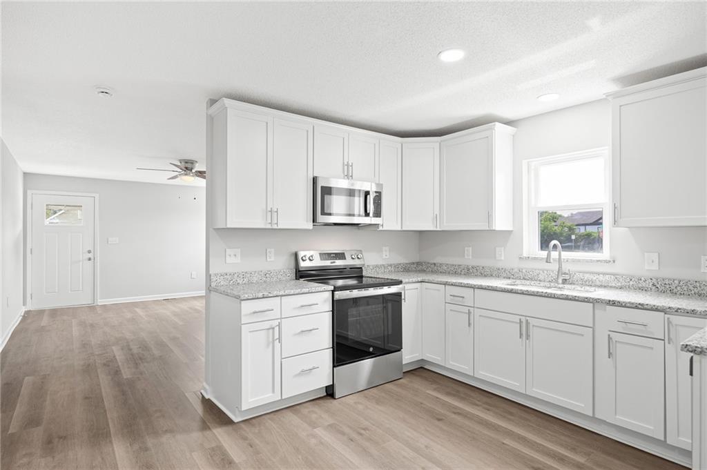 Updated 2 bedroom 1 bath Bungalow. Living area opens to kitchen. New cabinets, countertops and appliances. New flooring and fresh paint throughout. 1 car detached garage area. This is a Fannie Mae Homepath home.
