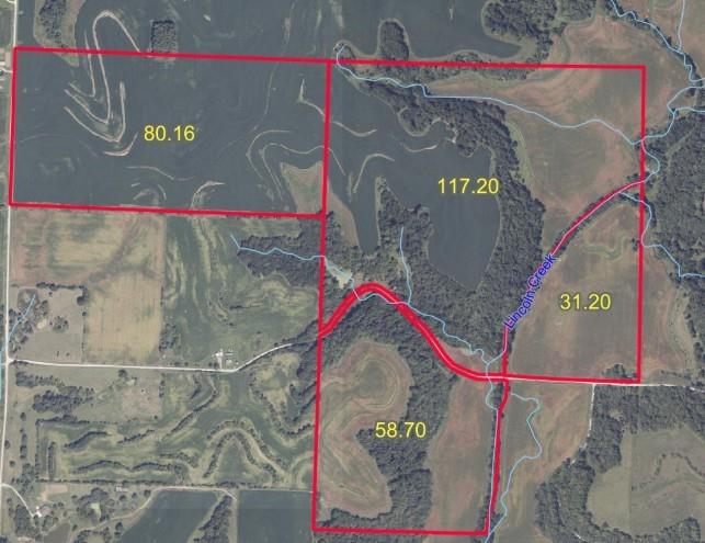 Multiple tracts being presented as one offering of 287+/- acres. This listing offers a combination of tillable farmland and timber. Approximately 186+/- acres are in active row crop production making this option about 65% tillable. The tillable acres consist primarily of loam type soils and an overall NCCPI rating of 75.5 promising an excellent return on investment. For the investors, this property holds great potential for a premier hunting lease that will greatly improve that ROI value. Tract 8 is the most highly tillable tract that is part of this overall listing and has well maintained field tile and terraces. The terrain of this property offers everything from bottom ground, gently rolling areas, high ridges and hollers. The mix of wooded and agricultural acres provides excellent wildlife habitat. Lincoln Creek is a large live creek that spans almost ¾ of a mile through the property providing a year-round running water source for wildlife. The current owners have spent many days exploring this creek and have found a multitude of historic artifacts such as arrowheads and primitive tools as well as animal artifacts. Tract 3 has an original farm home that needs some TLC and a barn that is in good condition and ready to be utilized. This listing combines multiple tracts of land that have recently been surveyed off of their original parcels. This public offering consists of tracts 2,3,4,5 & 8 as indicated on the survey and map supplements that are provided as part of this listing. Available tracts are also being offered in other combinations. Tracts 4,5 & 8 can be purchased individually as well.