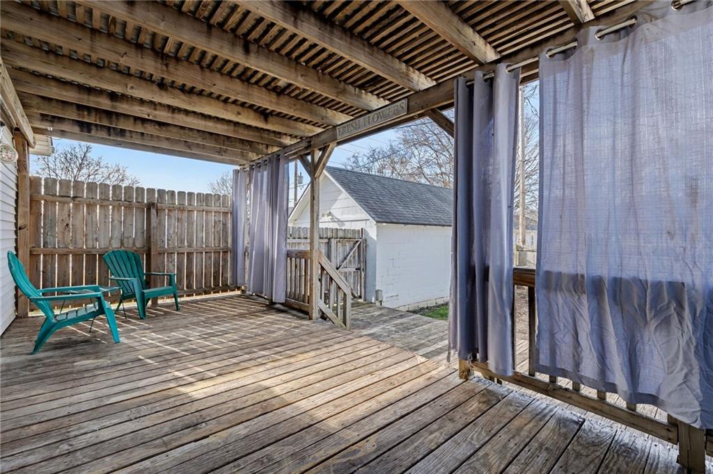 This charming Craftsman style home sits on a quiet street with the loveliest neighbors. One of the standout features of this home is the oversized living space added to the back — with vaulted ceilings and beautiful natural light, this area is incredibly spacious and makes the perfect living/dining combo or true hangout quarters of the house. Both main-level bedrooms feature brand new carpet and are separated by a full bathroom, offering a great layout and privacy. Laundry has been thoughtfully moved to the main level for easy one-level living, but can easily be converted back to a traditional closet with laundry returned to the basement if preferred. LVP flooring has been added throughout the living room and great room, giving the home a fresh, updated feel. Step out front and enjoy the covered porch — just add a couple of chairs and you have the perfect spot to relax, rain or shine. Out back, you’ll love the privacy-fenced yard and oversized covered deck. This home also offers a non-conforming bedroom in the basement with a workshop area, built-in storage cabinets, and a utility sink. The detached garage offers more than just parking — it’s perfect for a workshop, hobbies, or extra storage, and the home also provides plenty of off-street parking.