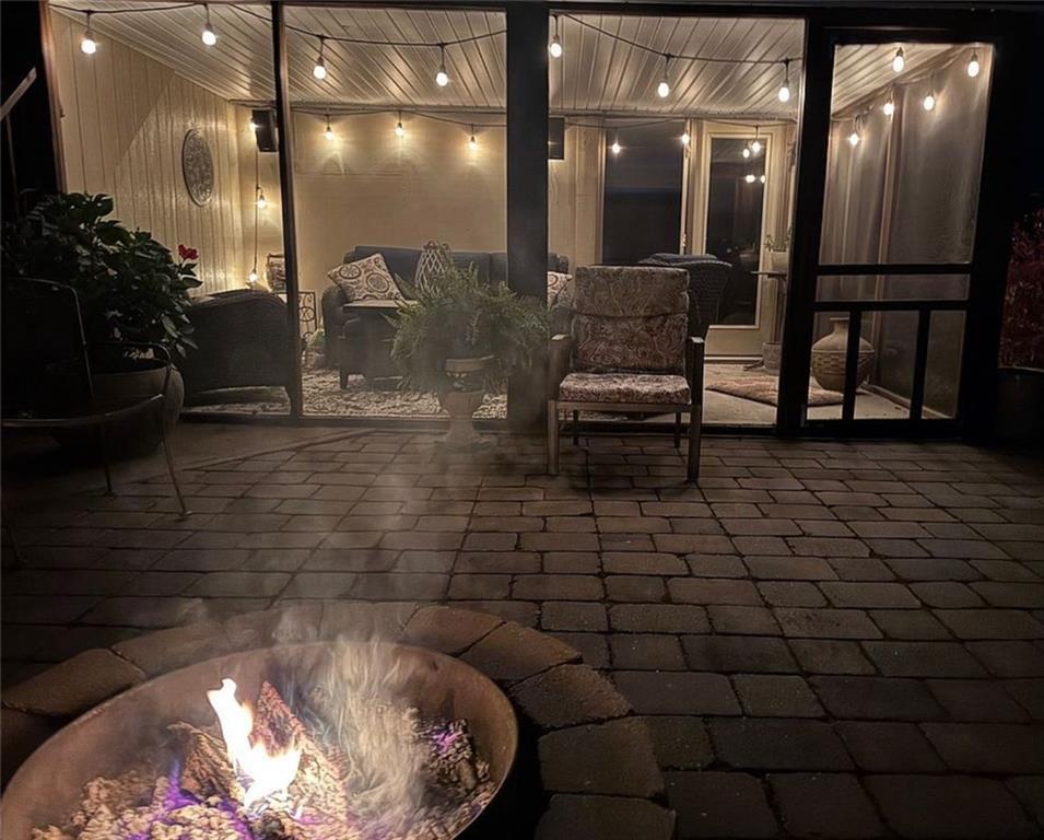Beautifully remodeled raised ranch in Country Club Village-Andrew County & Savannah School district! Welcome home to this 3-bedroom ranch located in the conveniently located neighborhood of Andrew County. This quiet horseshoe street is just .3 miles from John Glenn Elementary School and only a 12-minute drive to Savannah High School-making it an ideal location if you are looking to get into the Savannah School District. This move-in ready home features a bright eat-in kitchen with ample cabinet space, and a Pella sliding door that opens to a spacious deck. The living room offers custom-built bookshelves & cabinets, along with a wood burning fireplace and a built-in insert for a flat screen TV (included) and surround sound. The primary bedroom includes French doors that open to the deck, which spans the entire length of the home and overlooks a beautifully designed backyard entertainment area complete with a brick patio and built-in firepit-perfect for gatherings and relaxing evenings. A long driveway provides plenty of parking and creates a large, safe area for kids or pets to play, ride bikes or shoot hoops. The newly carpeted finished recreation room adds even more living space and includes another fireplace, built-in cabinets with a sink, and a small refrigerator-ideal for entertaining. An electronics cabinet, stereo system and outdoor Bose speakers extend the fun to the screened-in patio area. Also located on the lower level are the laundry room and third full bathroom (washer & dryer stay). The two-car garage includes a workbench and space for an additional refrigerator and/or freezer. Recent upgrades include new windows and LVP throughout. All your shopping and dining needs are just 1.3 miles to the North shopping area. This home offers comfort, convenience and outstanding indoor & outdoor living-don't miss your opportunity to make it yours!