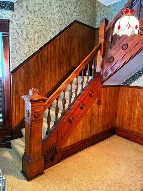 Ultimate classic living in this 2 story Victorian home. This is just one of three homes that stand together and are majestic in there being so well cared for, loved, and are so lovely unique in their homage to the Victorian age This large home has some of the most gorgeous woodwork you will find anywhere even close to this price. There are large rooms, pocket doors, elegant trim in solid wood and has never been painted. The pictures do not do its justice. There is a closet or 2 in each huge bedroom, The lot also has a workshop in the back yard and a wrap around porch to enjoy the day and evenings in this quite town.