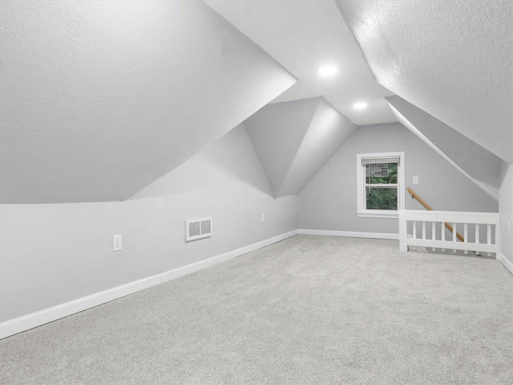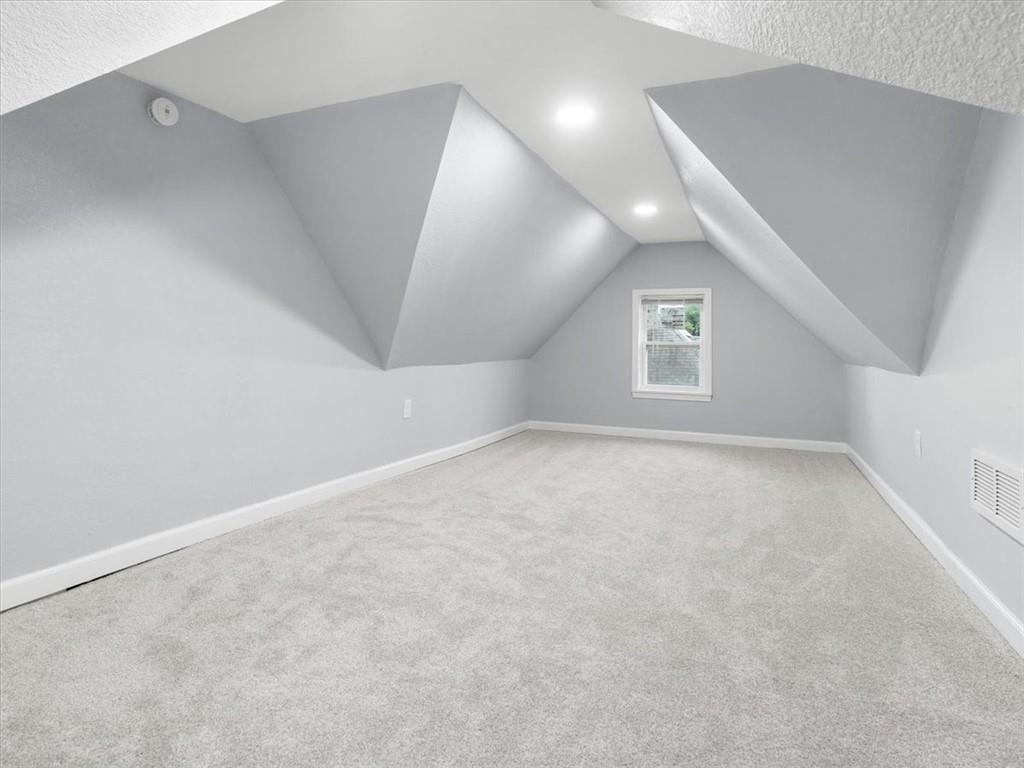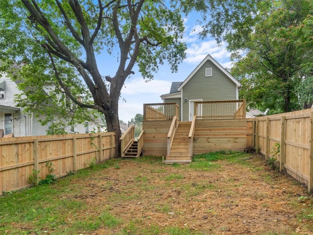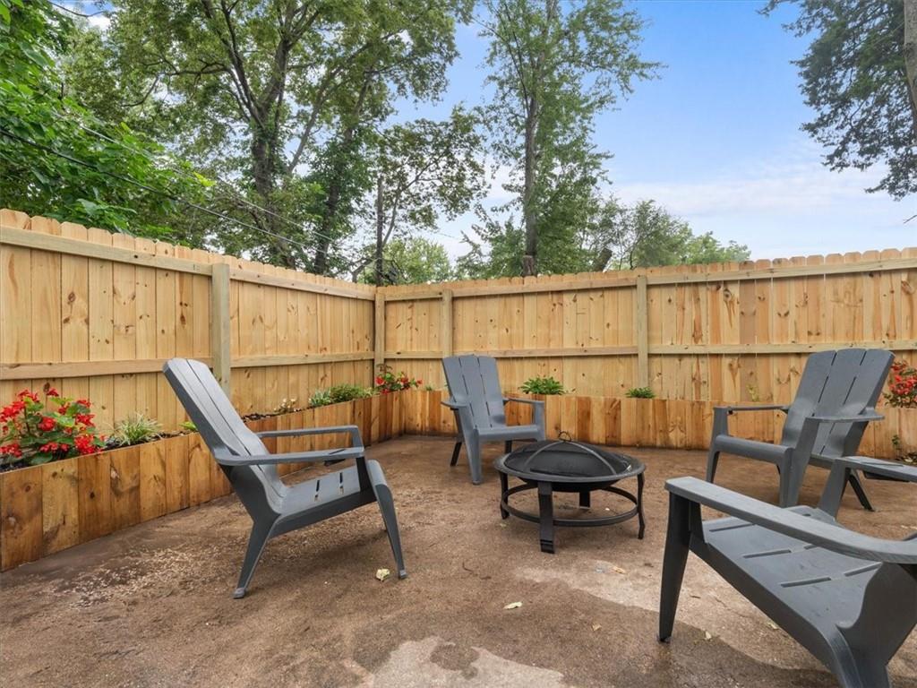 Step inside this beautifully updated 2 bedroom, 1 bath home with bonus space upstairs that works perfectly as a non-conforming bedroom or office. The open kitchen features bar seating and comes fully equipped with a stove, refrigerator, and microwave. Main floor laundry adds everyday convenience, while modern finishes throughout make the home truly move-in ready. Outside, enjoy both chain link and wood privacy fencing, a spacious deck for entertaining, and a patio area perfect for a firepit or outdoor seating.