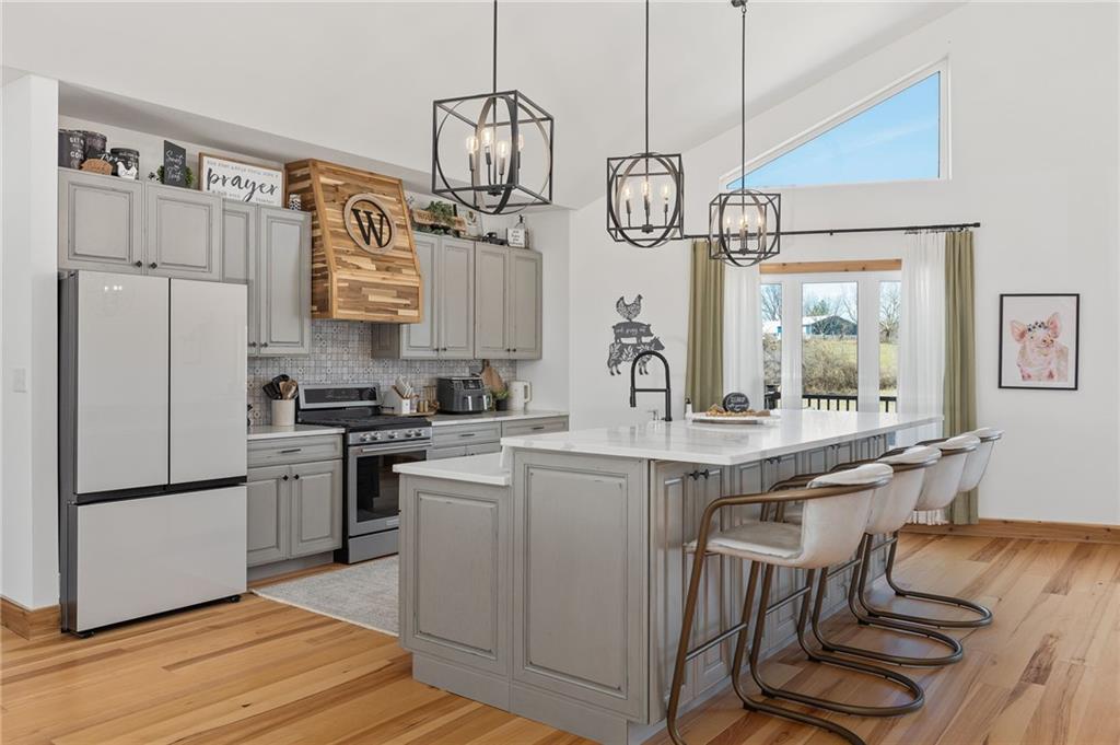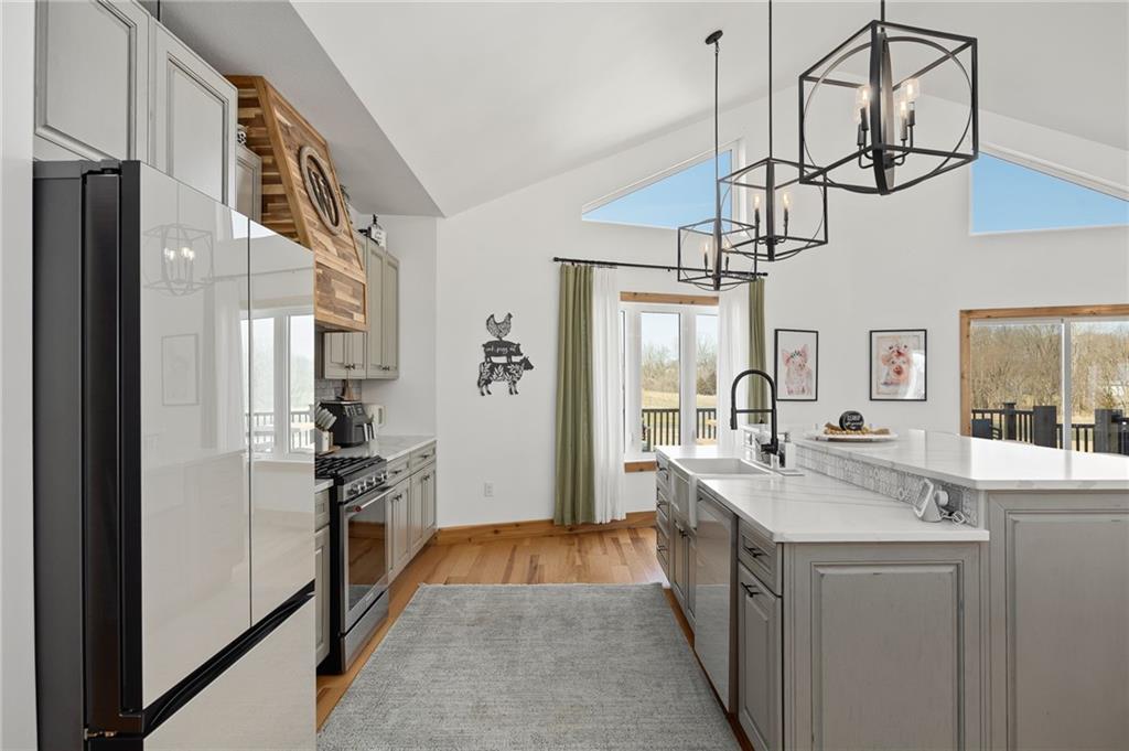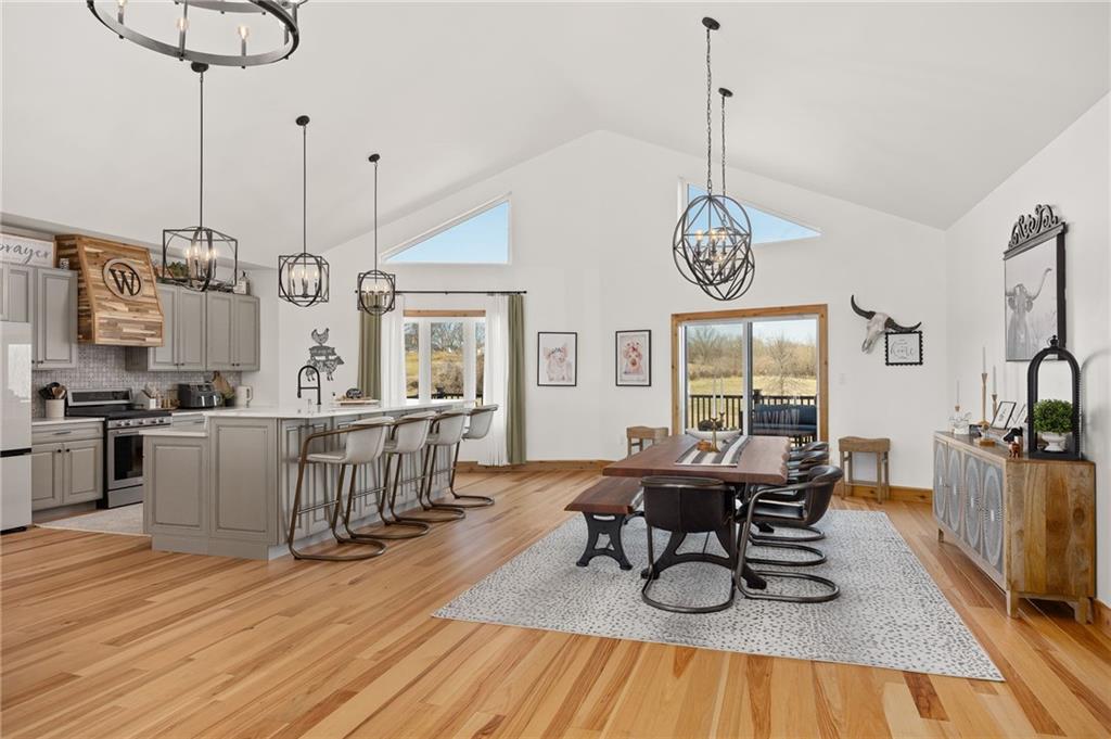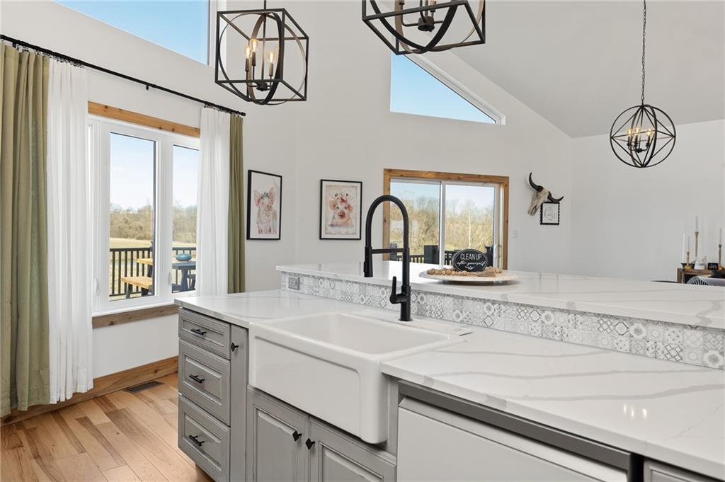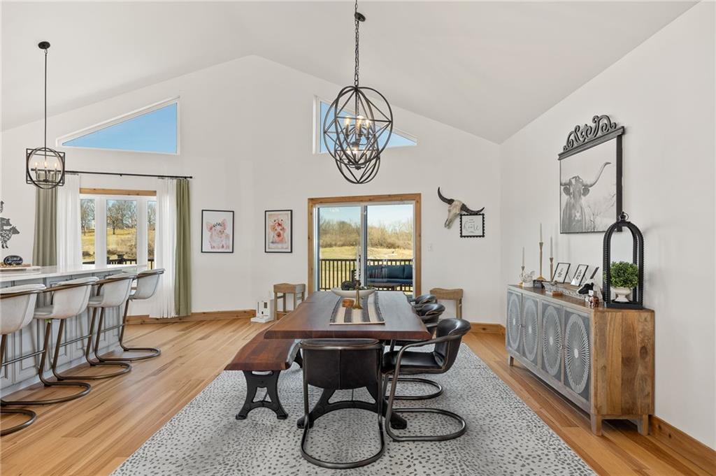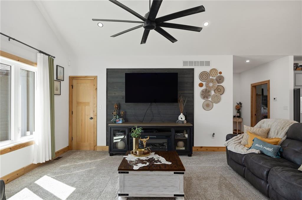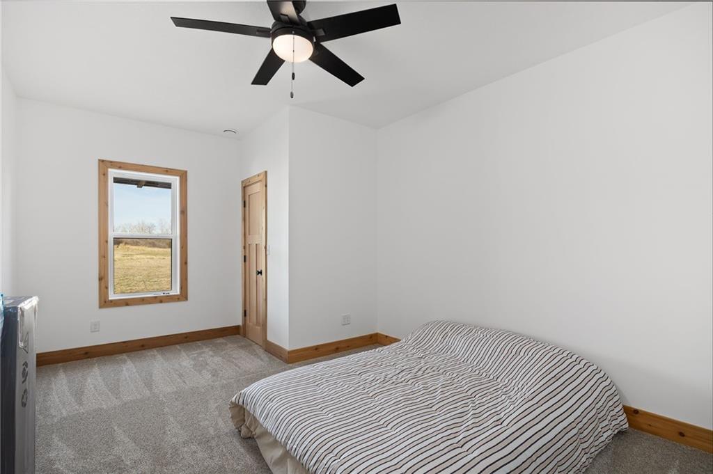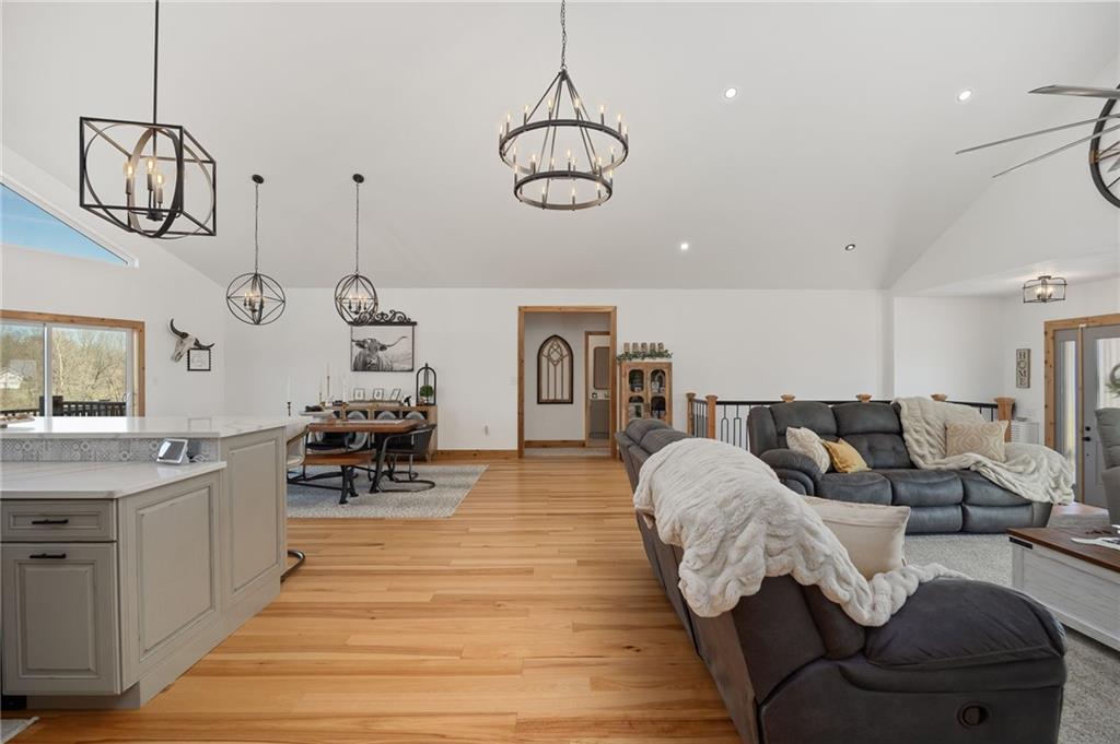Experience the perfect blend of modern luxury, privacy, and functionality with this exceptional 2024-built ranch home set on nearly 10 scenic acres with a pond—a rare opportunity for those wanting space to live, work, and enjoy the outdoors without compromise. This thoughtfully designed 5-bedroom, 3-bathroom home offers true main-level living with an open, light-filled layout ideal for both everyday comfort and entertaining. The spacious kitchen features a walk-in pantry and flows seamlessly into the living and dining areas, then extends onto a large deck overlooking the property—perfect for morning coffee, sunset views, or hosting gatherings. The walk-out basement patio adds an additional outdoor living area and easy access to the surrounding acreage. The private primary suite is a standout retreat, highlighted by a spa-like primary bathroom designed for relaxation and comfort. Additional features include main-floor laundry, a large utility room, a dedicated exercise room, and an unfinished office or bonus storage space ready to be customized to fit your needs. An attached 3-car garage adds everyday convenience. The showstopper is the incredible 42×90 hydronic-heated shop, offering unmatched versatility with its own finished office space, full bathroom, laundry area, and expansive workspace—ideal for a home-based business, equipment storage, hobby space, or ultimate workshop setup. Enjoy peaceful pond views and wide-open acreage perfect for recreation, animals, or simply embracing the quiet beauty of country living—all while enjoying the benefits of nearly new construction.