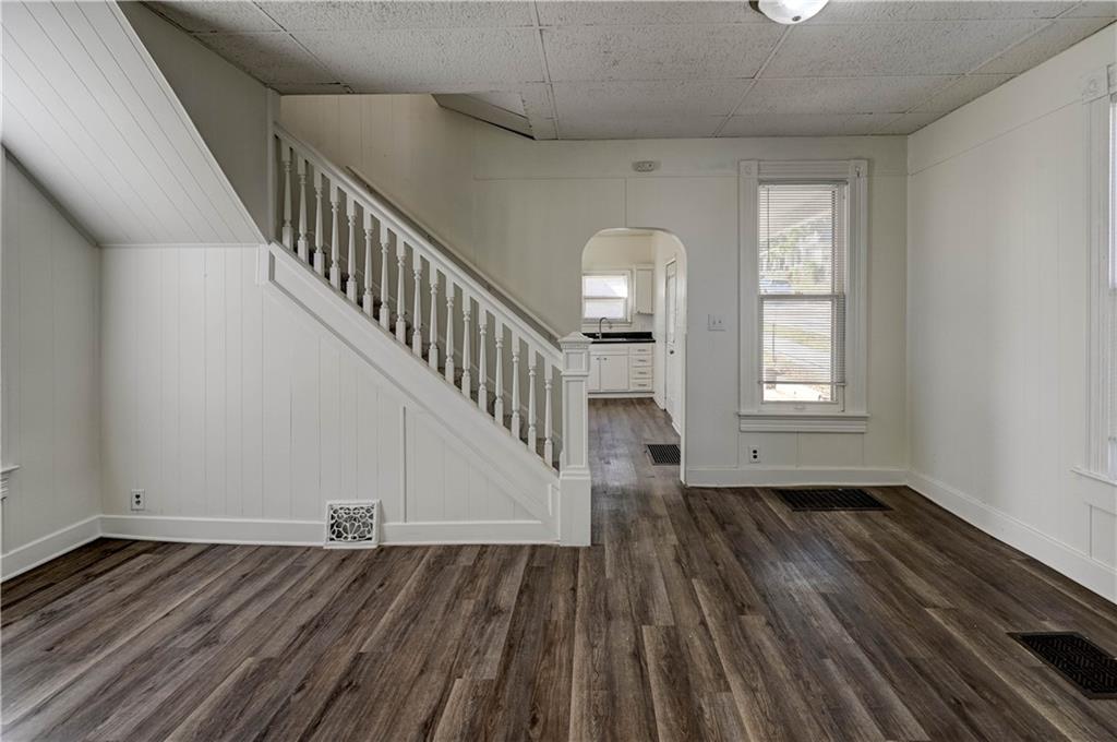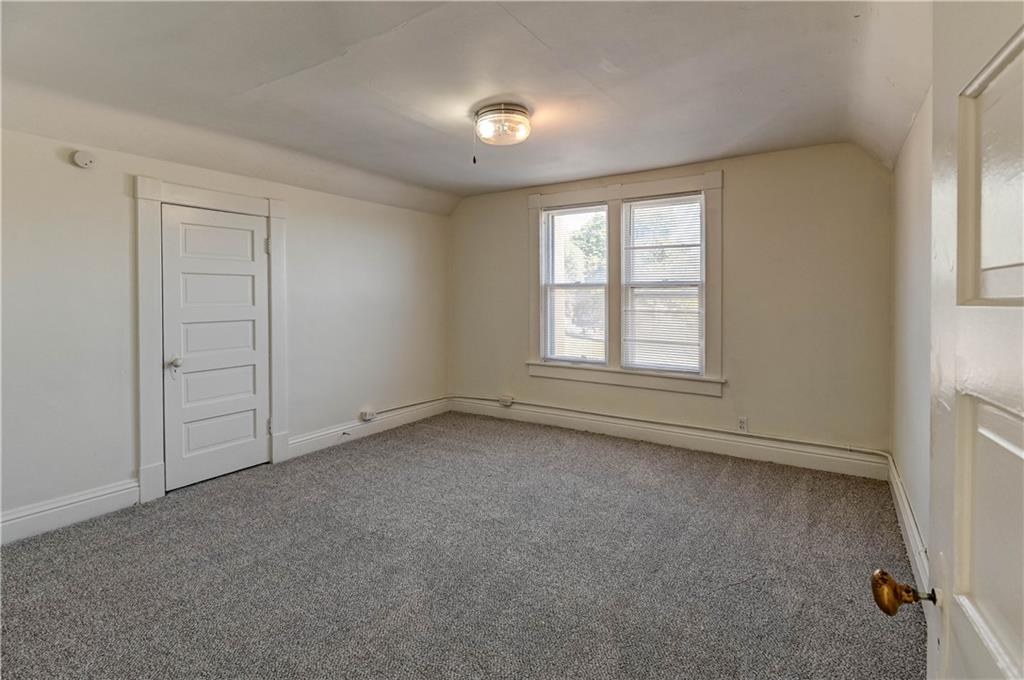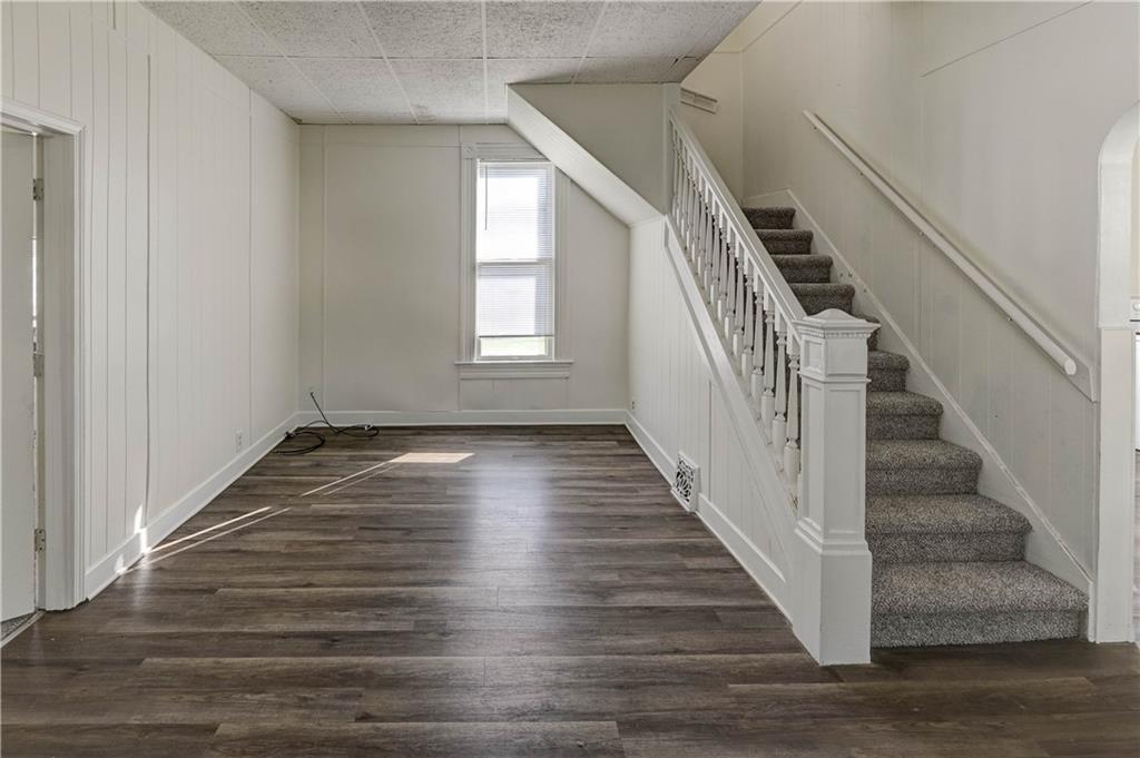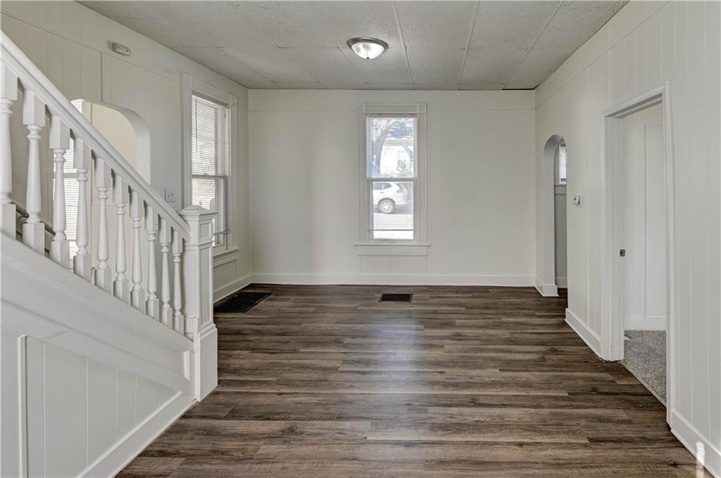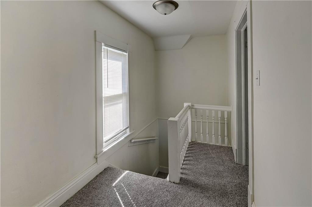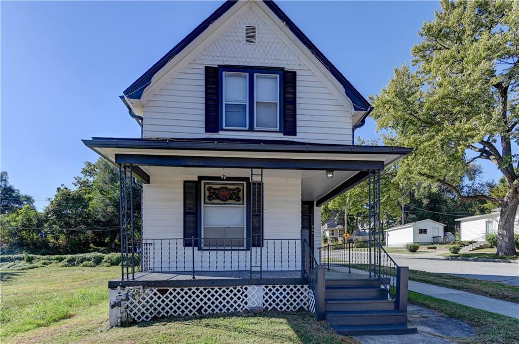 4 bedroom 1.5 bath home. Has newer paint and flooring. Home has bedroom on main level and 3 bedroom upstairs. Home does have a basement. Home also has detached 2 car garage.