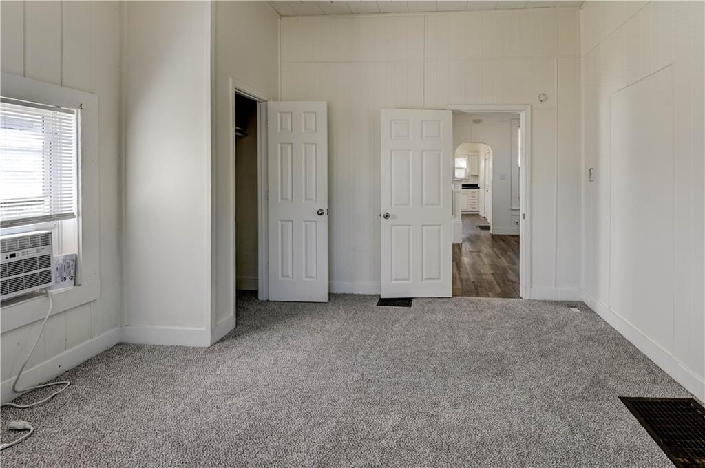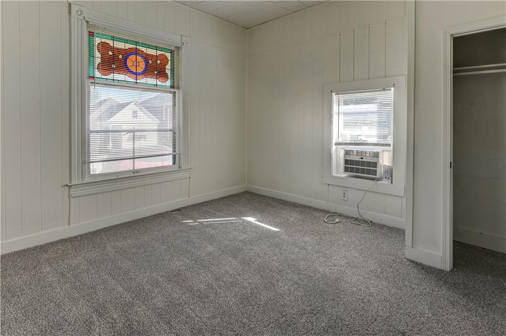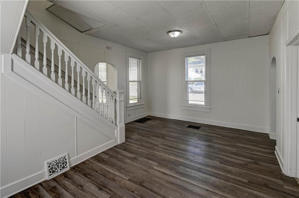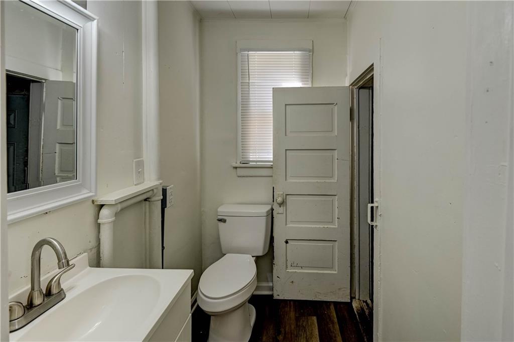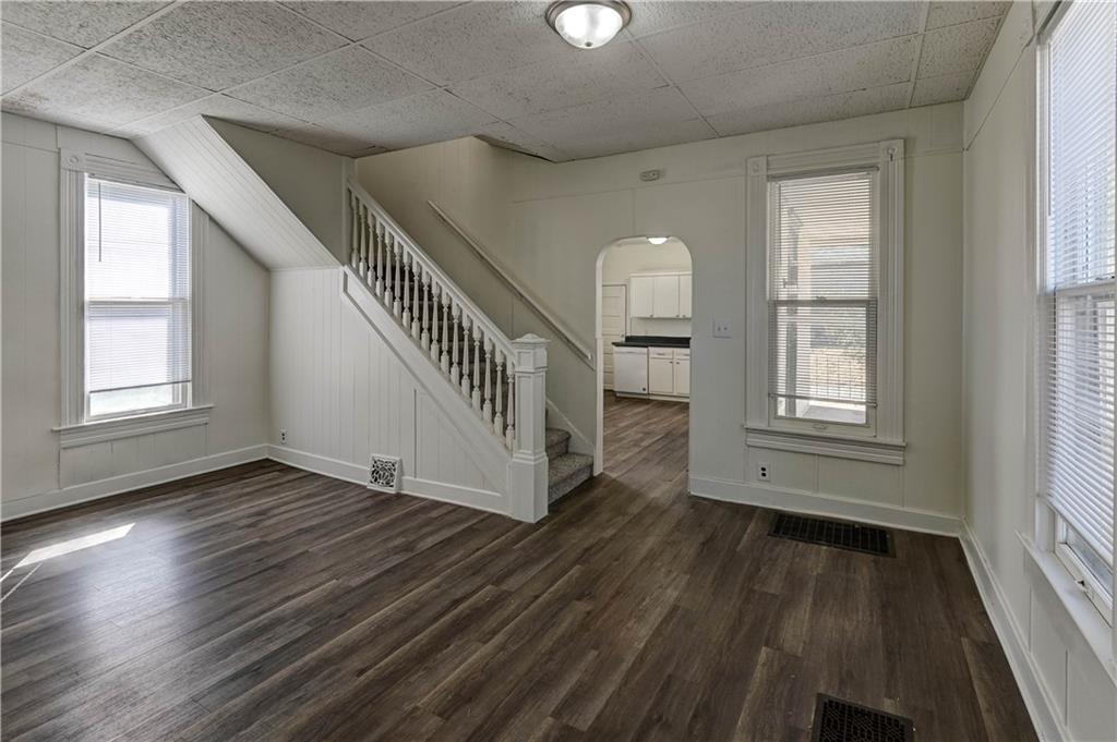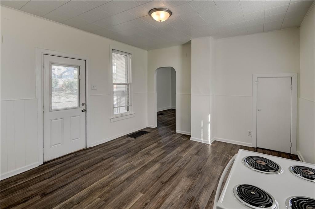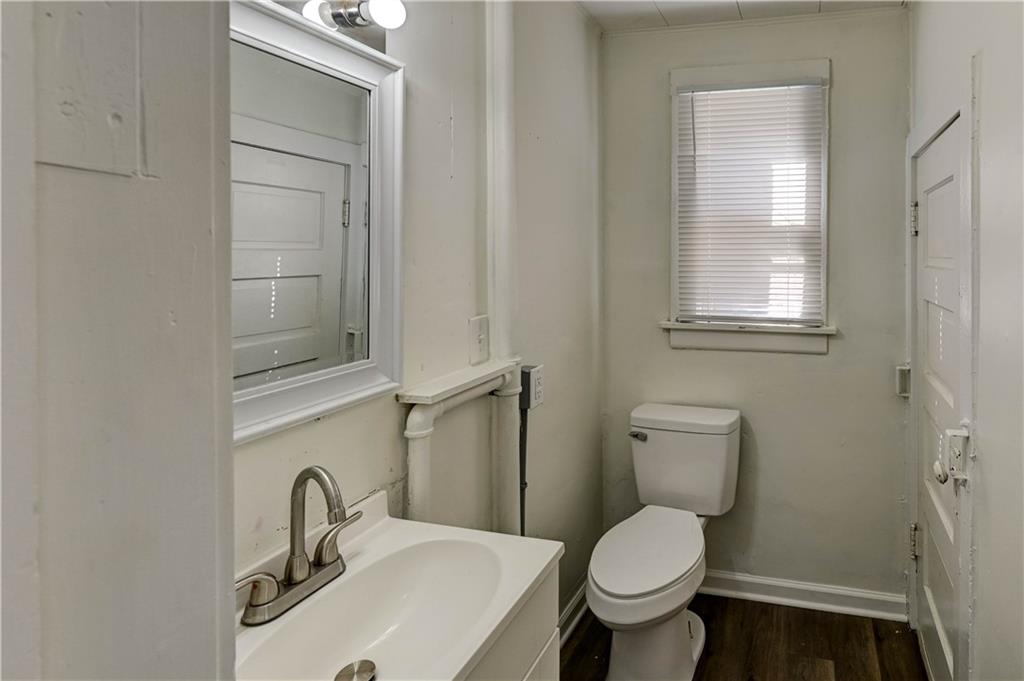 4 bedroom 1.5 bath home. Has newer paint and flooring. Home has bedroom on main level and 3 bedroom upstairs. Home does have a basement. Home also has detached 2 car garage.