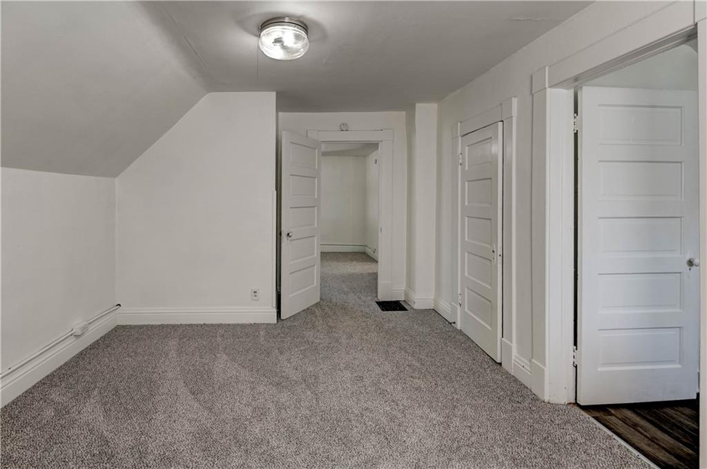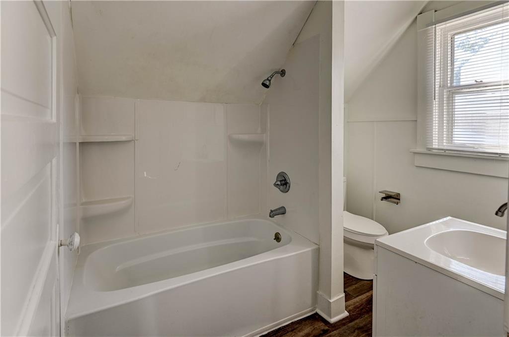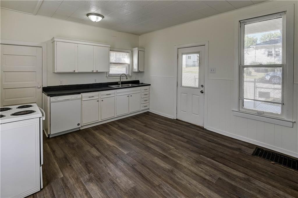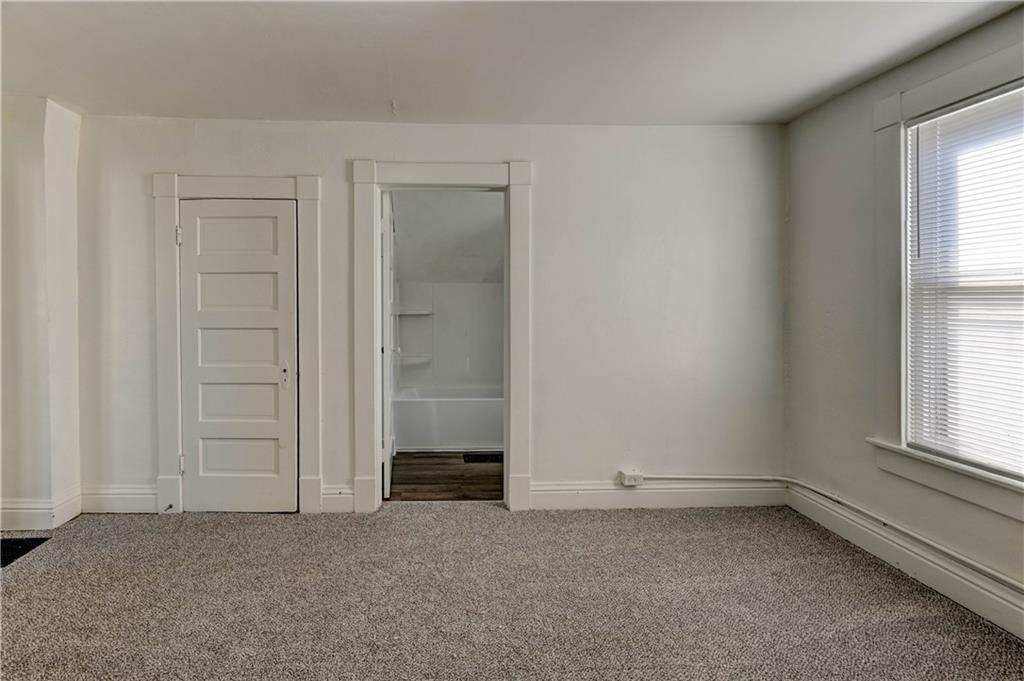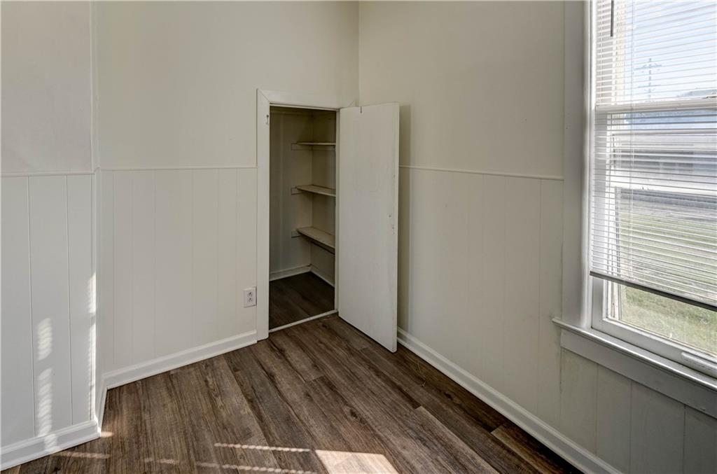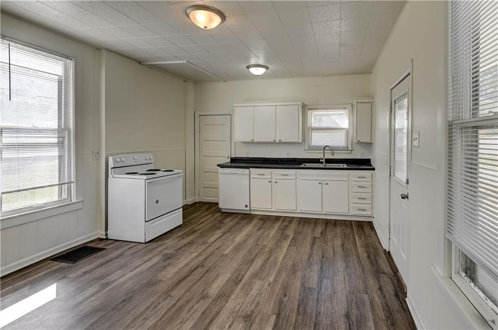 4 bedroom 1.5 bath home. Has newer paint and flooring. Home has bedroom on main level and 3 bedroom upstairs. Home does have a basement. Home also has detached 2 car garage.