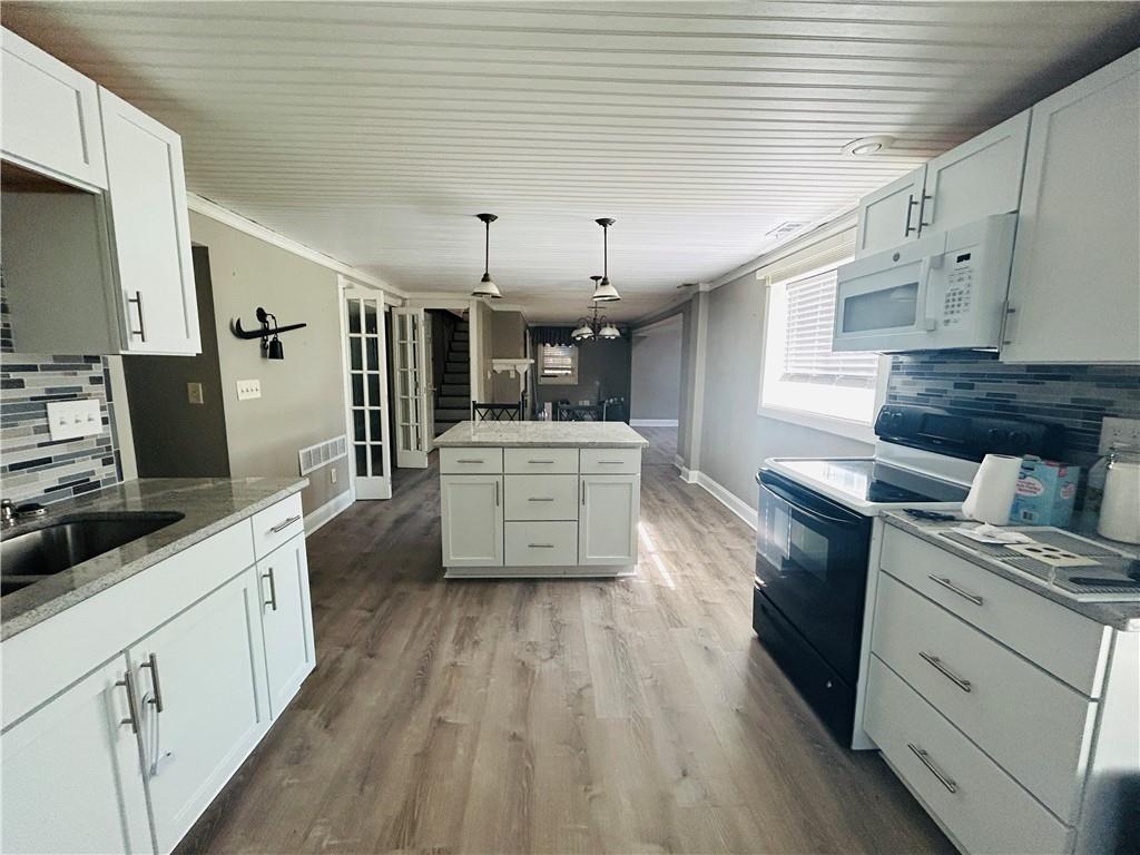 This single-family home has doubled down on its amenities making it ideal for families who have multiple generations living under one roof or those who need separate living quarters for work, guests or any other circumstance. While not currently a duplex, there are options to make it a multifamily residence you can reach out to me to discuss. It includes Double kitchens Double living rooms Double bathrooms Double separate entrances Double fireplaces Double parking each level to an entrance Additionally, it features recent upgrades including flooring and an entire kitchen remodel. A two car Detached garage in back. Private backyard yard with low maintenance requirements. Large screened in exterior patio.