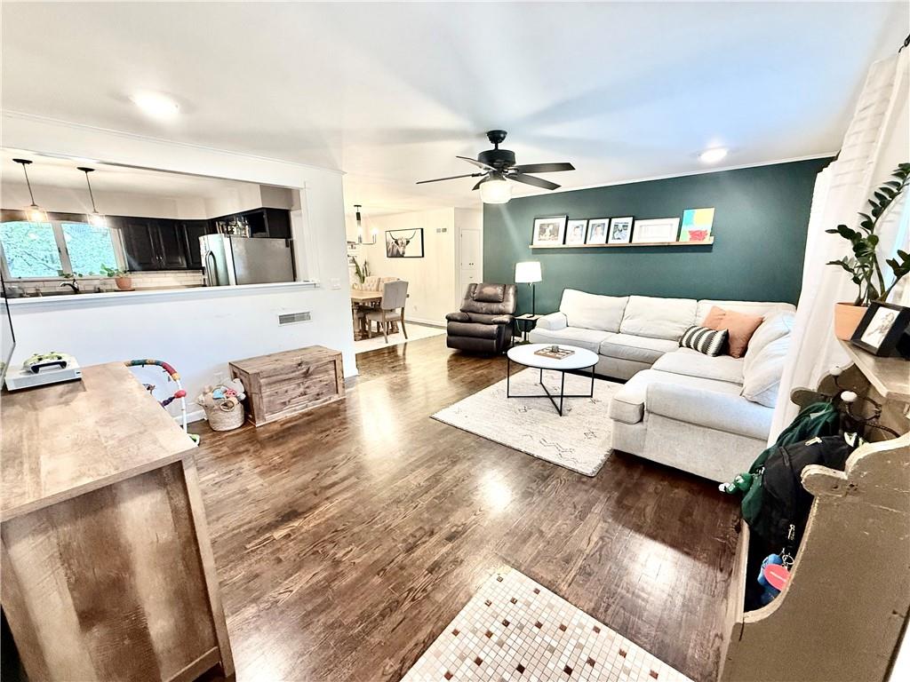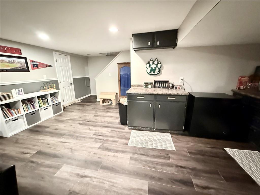 Beautifully Updated Four-Bedroom Home This charming home features updates throughout, including beautiful hardwood floors and an open-concept design connecting the kitchen, dining, and living areas. The spacious kitchen offers a large island—perfect for cooking and entertaining. The full walkout basement adds even more living space, with a large family room, a fourth bedroom, a kitchenette, and a full bathroom—ideal for guests or an in-law suite. Enjoy the peaceful, tree-lined backyard from the covered deck. A one-car garage completes this inviting home.